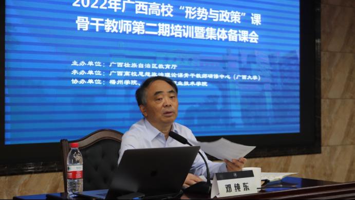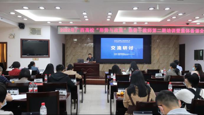 为全面贯彻党的教育方针,进一步加强我区高校“形势与政策”课教师队伍建设,落实立德树人根本任务,由自治区教育厅主办,广西高校思想政治理论课骨干教师研修基地(金年金字招牌诚信至上)承办,梧州学院和广西机电职业技术学院协办的2022年广西高校“形势与政策”课骨干教师第二期培训暨集体备课会于11月1日—3日在北海举办。