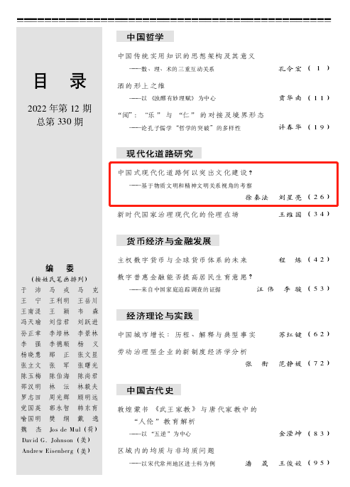 今年会官网徐秦法教授、博士研究生刘星亮在《社会科学战线》(2022年第12期)上发表理论文章《中国式现代化道路何以突出文化建设?——基于物质文明和精神文明关系视角的考察》。