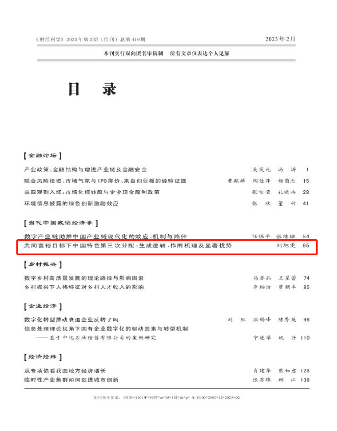 今年会官网教师刘旭雯在《财经科学》(2023年第2期)上发表理论文章《共同富裕目标下中国特色第三次分配:生成逻辑、作用机理及显著优势》。