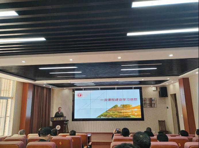 陈礼军副教授分享了对一流课程申报和建设的经验和思考,从申报的流程、申报的要求和评价指标体系等方面展开,同时展示了一流课程申报的部分优秀说课视频,使老师们更加了解一流课程建设的总体思路、创新方法和教学设计。
