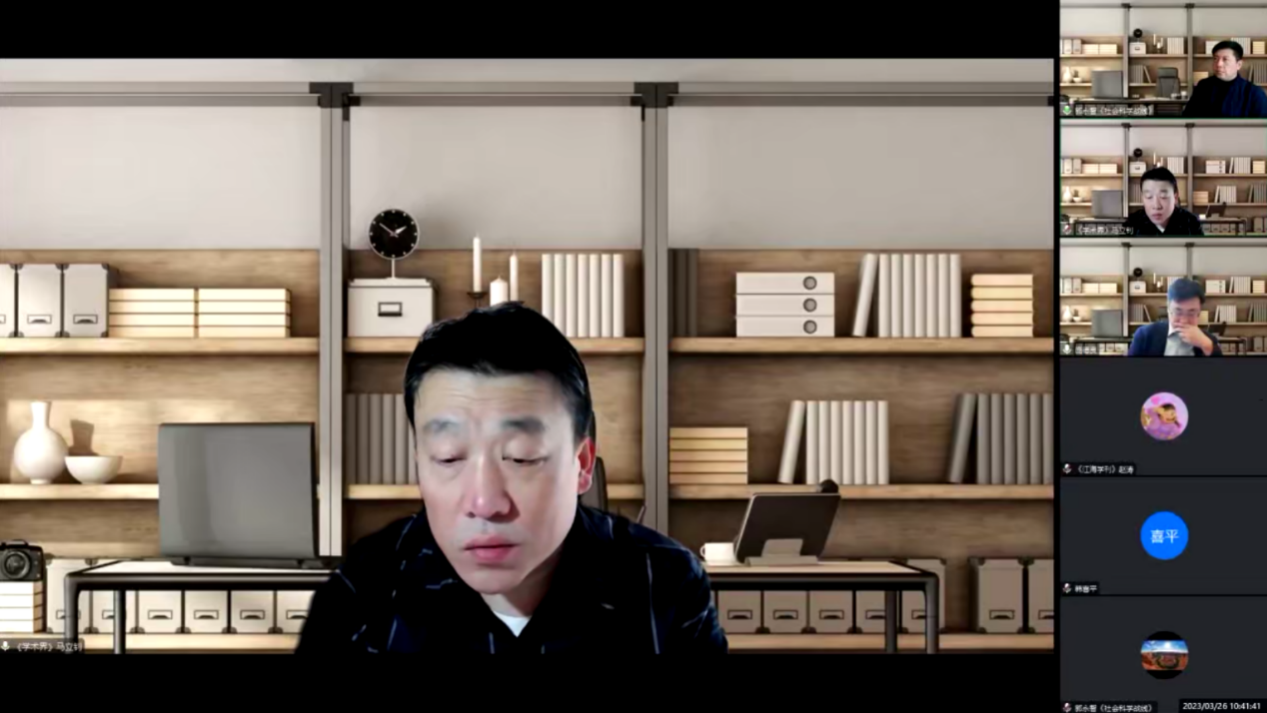 金年金字招牌诚信至上科研院常务副院长王祥高教授、科研院六级职员李小文教授、《金年金字招牌诚信至上学报》(哲学社会科学版)副主编韦家朝教授以及今年会jinnianhuicom院长徐秦法教授、梁建新教授等13人在线上线下参会,会议由梁建新教授主持。
