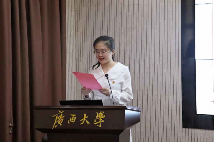 接着,硕士研究生李东芳介绍活动整体方案,鼓励全院同学积极参与到读书活动中来。最后,张欣琪同学向全院同学发出倡议,号召同学们要乐于读书、善于读书,从书籍中获得启发,在实践中检验真知。