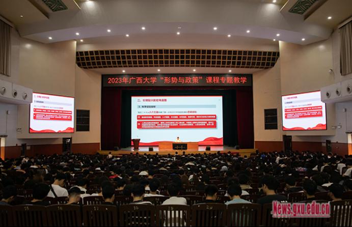5月9日,自治区政协副主席、校党委书记王乃学以《学习宣传贯彻党的二十大精神:立志复兴伟业 踔厉奋发前行》为题,为资源环境与材料学院、文学院、医学院2022级学生700余人作专题授课,从永载史册的伟大变革、引领复兴的宏伟蓝图、笃行不怠的战略定力等三大方面系统解读了党的二十大精神的深刻内涵和重大意义。
