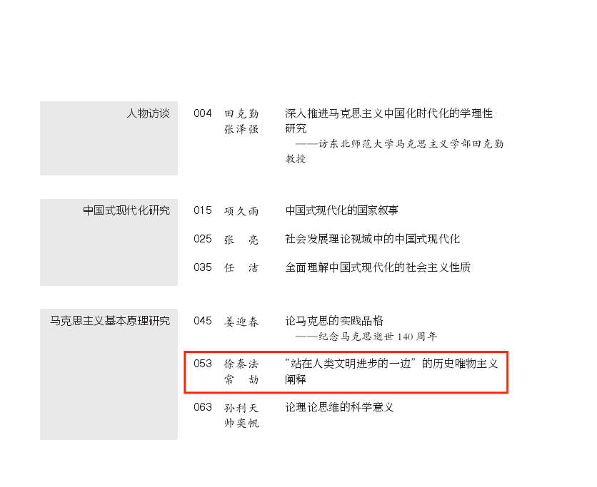 今年会官网教师徐秦法、博士研究生常劼在《马克思主义理论学科研究》(2023年第2期)上发表理论文章《站在人类文明进步的一边”的历史唯物主义阐释》。