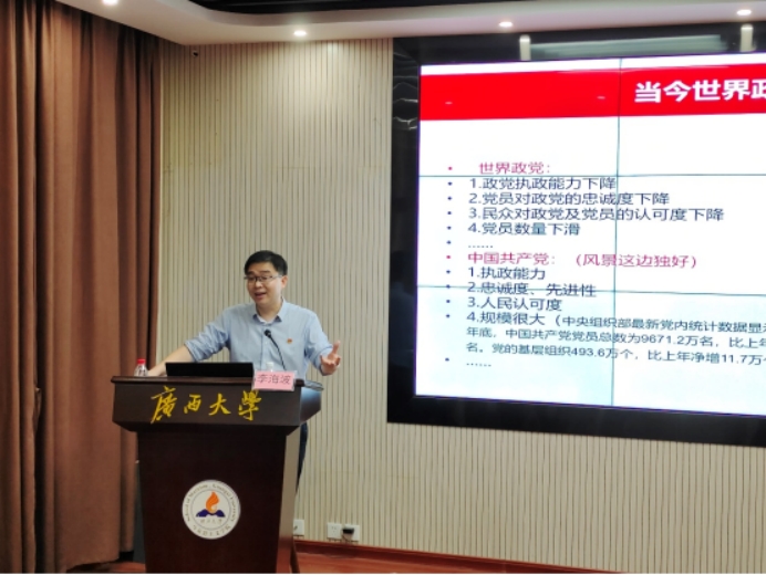 课上,李海波以《中国共产党的性质、最高理想和根本宗旨》为题,从“当今世界政党建设面临的新情况”切入,围绕“三个代表”与“两个先锋队”的相互联系,为学员们深入浅出地讲解了中国共产党的性质。随后,他结合《中国共产党章程》以及党的二十大报告,向学员们系统阐释了“党的最高理想和最终目标是实现共产主义”这一重要命题。最后,他以毛泽东为悼念张思德而作的著名讲演《为人民服务》为例,深情讲述了中国共产党的根本宗旨是“全心全意为人民服务”,指出全体学员要深刻理解、准确把握中国共产党的性质、最高理想和根本宗旨,内化于心、外化于行,永远听党话、跟党走,始终牢记“人民至上”,自觉投身于中国式现代化伟大实践,争取早日加入中国共产党。