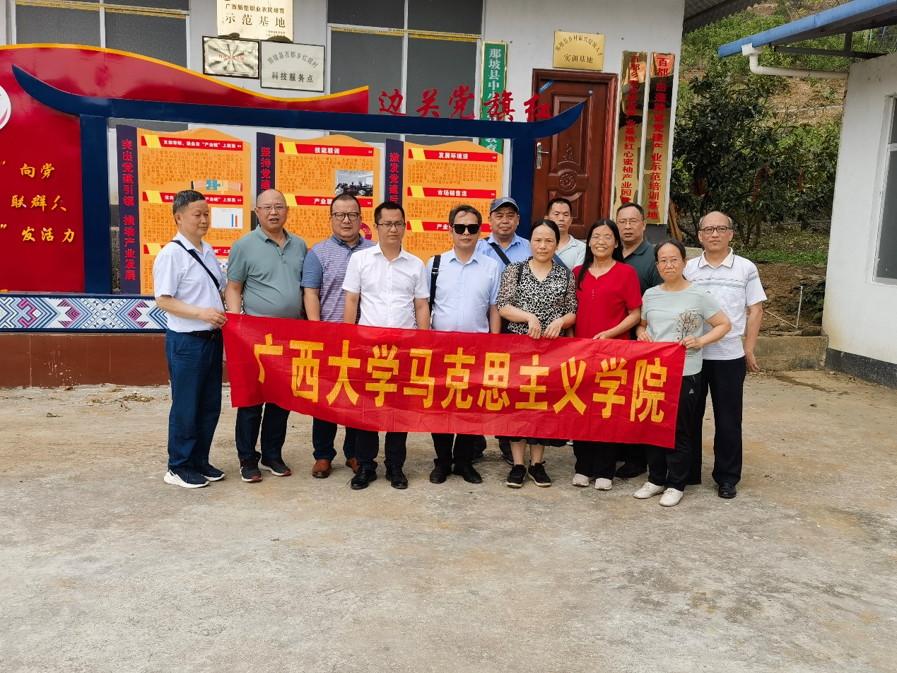 为了扎实推进区级一流课程《毛泽东思想和中国特色社会主义理论体系概论》建设,今年会jinnianhuicom概论教研部教师在学院副院长梁建新教授带领下,于2023年5月20日至21日赴广西那坡县城厢镇百林村、百都乡红坭村红心蜜柚产业基地、乡政府党群服务中心等地考察乡村振兴与推进共同富裕、基层党建与乡村治理等工作。