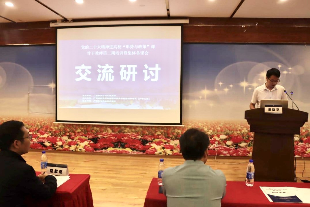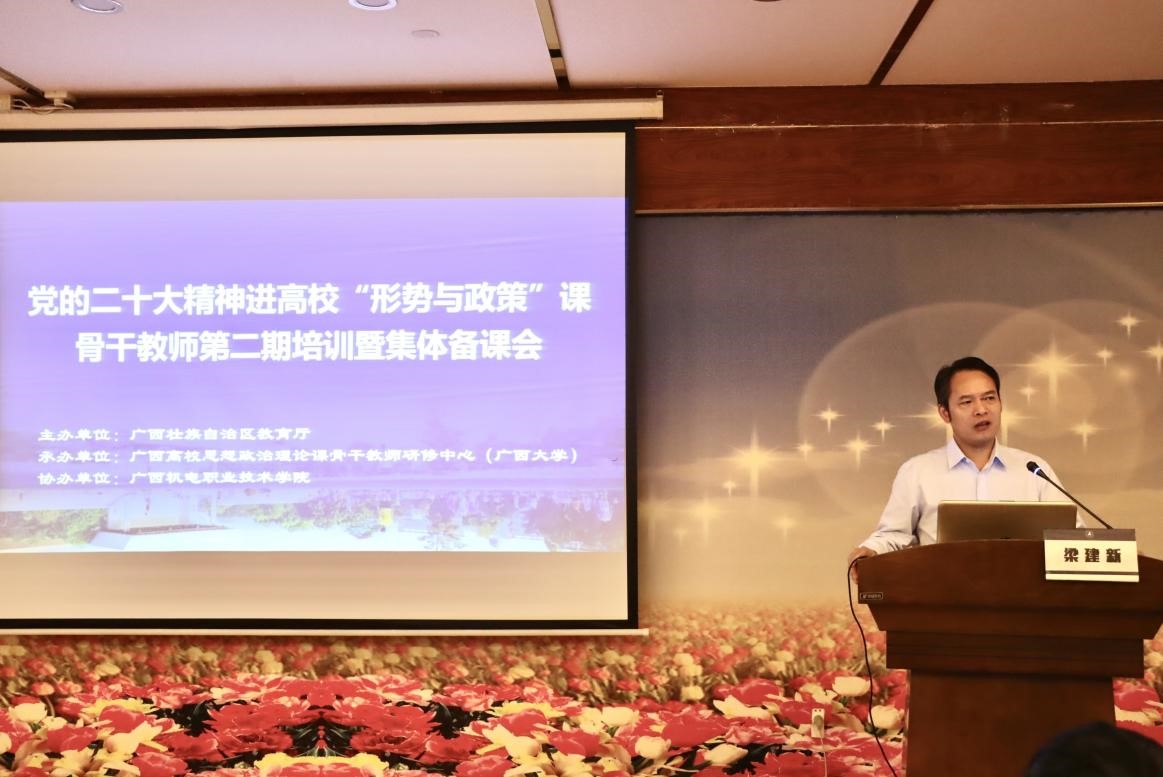 为全面贯彻党的教育方针,进一步加强我区高校形势与政策课教师队伍建设,落实立德树人根本任务,由自治区教育厅主办,广西高校思想政治理论课骨干教师研修基地(金年金字招牌诚信至上)承办,广西机电职业技术学院协办的党的二十大精神进高校“形势与政策”课骨干教师第二期培训暨集体备课会于10月28日—30日在广西柳州举办。