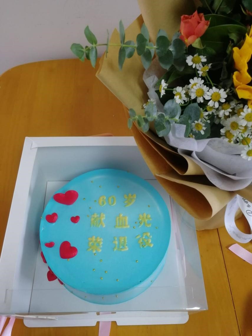2023年12月31日是严建新60岁生日的前一天,他赶在超龄“退役”前来到献血站进行最后一次献血,作为自己特殊的生日纪念。血站工作人员为严建新送上了写着“60岁献血光荣退役”的蛋糕和鲜花。