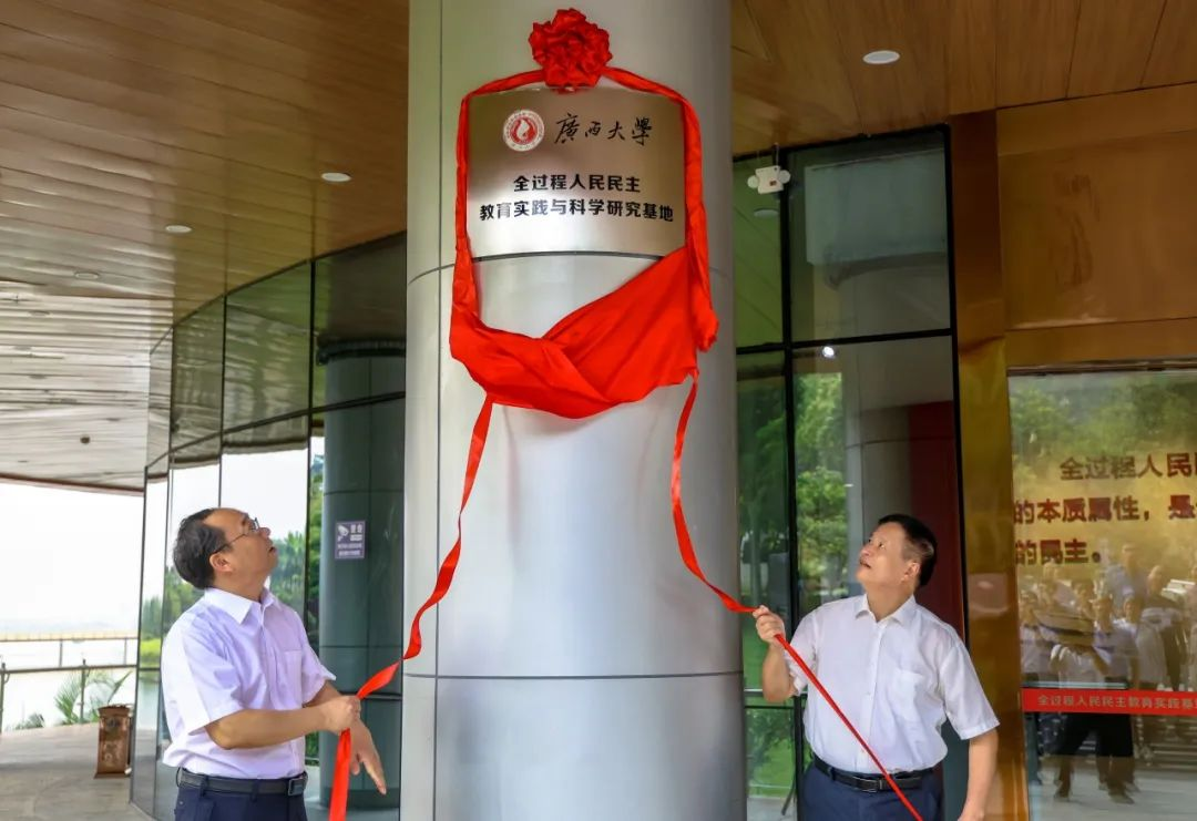 9月2日,梧州市人大常委会与金年金字招牌诚信至上共建的金年金字招牌诚信至上全过程人民民主教育实践与科学研究基地,在全过程人民民主教育实践基地·梧州展示馆举行揭牌仪式。金年金字招牌诚信至上党委常委、副校长于文进,梧州市人大常委会副主任黎永益共同为基地揭牌。今年会官网院长徐秦法教授参加揭牌仪式。