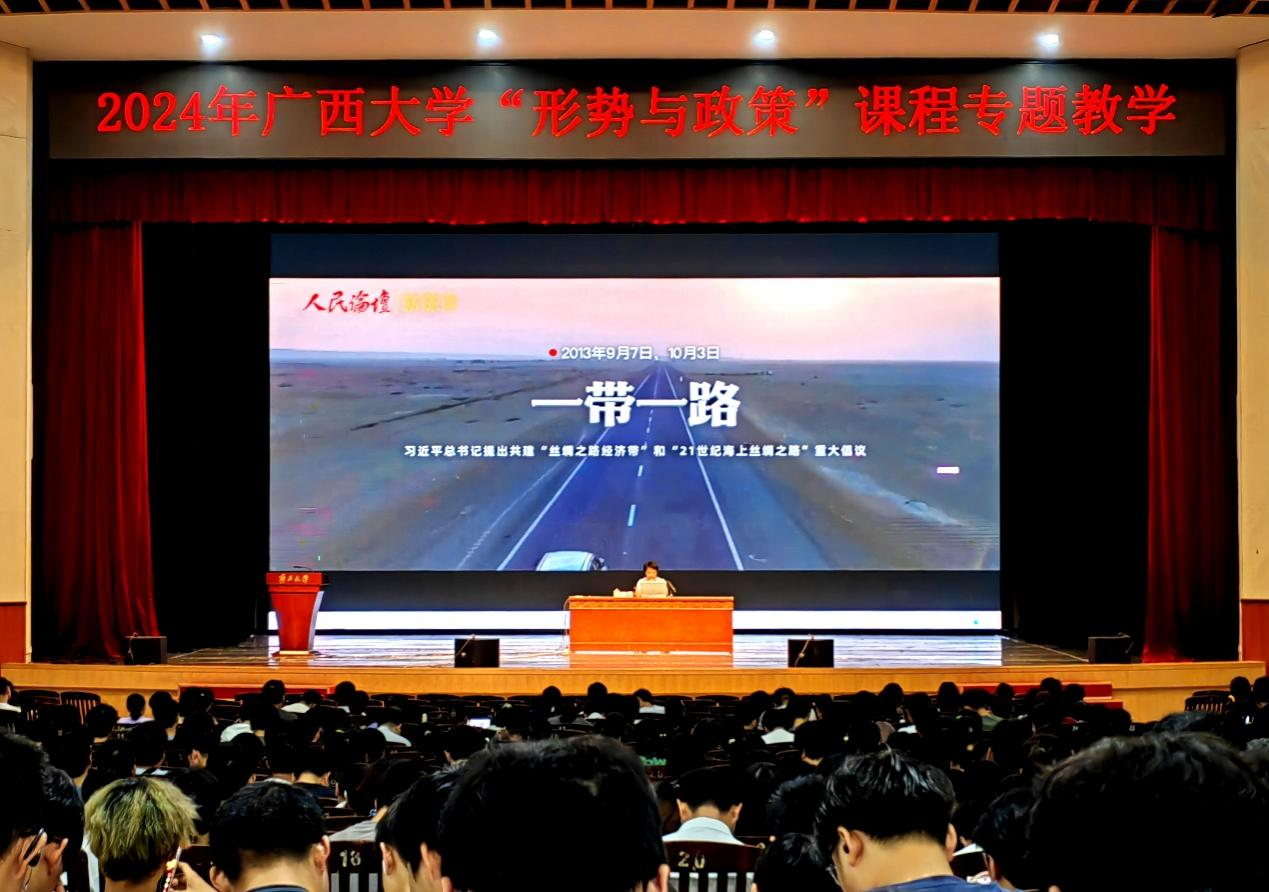 金秋送爽,硕果累累。2024年9月22日,在祖国即将迎来七十五周年华诞之际,我校2024年秋季“形势与政策”课程专题教学报告会拉开了帷幕。广西社会科学院民族研究所所长、研究员,广西社会科学院铸牢中华民族共同体意识研究基地主任覃娟同志为同学们作了题为“改革创新担使命——学习党的二十届三中全会精神”的专题教学报告。