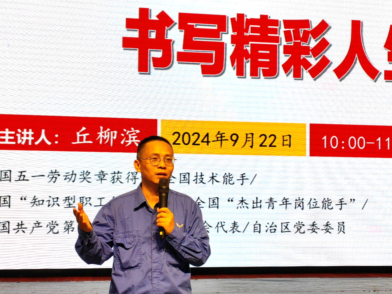 2024年9月22日,在我校大礼堂举行的2024年秋季“形势与政策”课程专题教学报告会上,广西汽车集团有限公司首席技能专家、特级技师、正高级工程师、广西首批科学家精神宣讲团成员、全国“五一劳动奖章”获得者丘柳滨同志给同学们带来了题为“爱岗敬业——书写精彩人生”的专题教学报告。