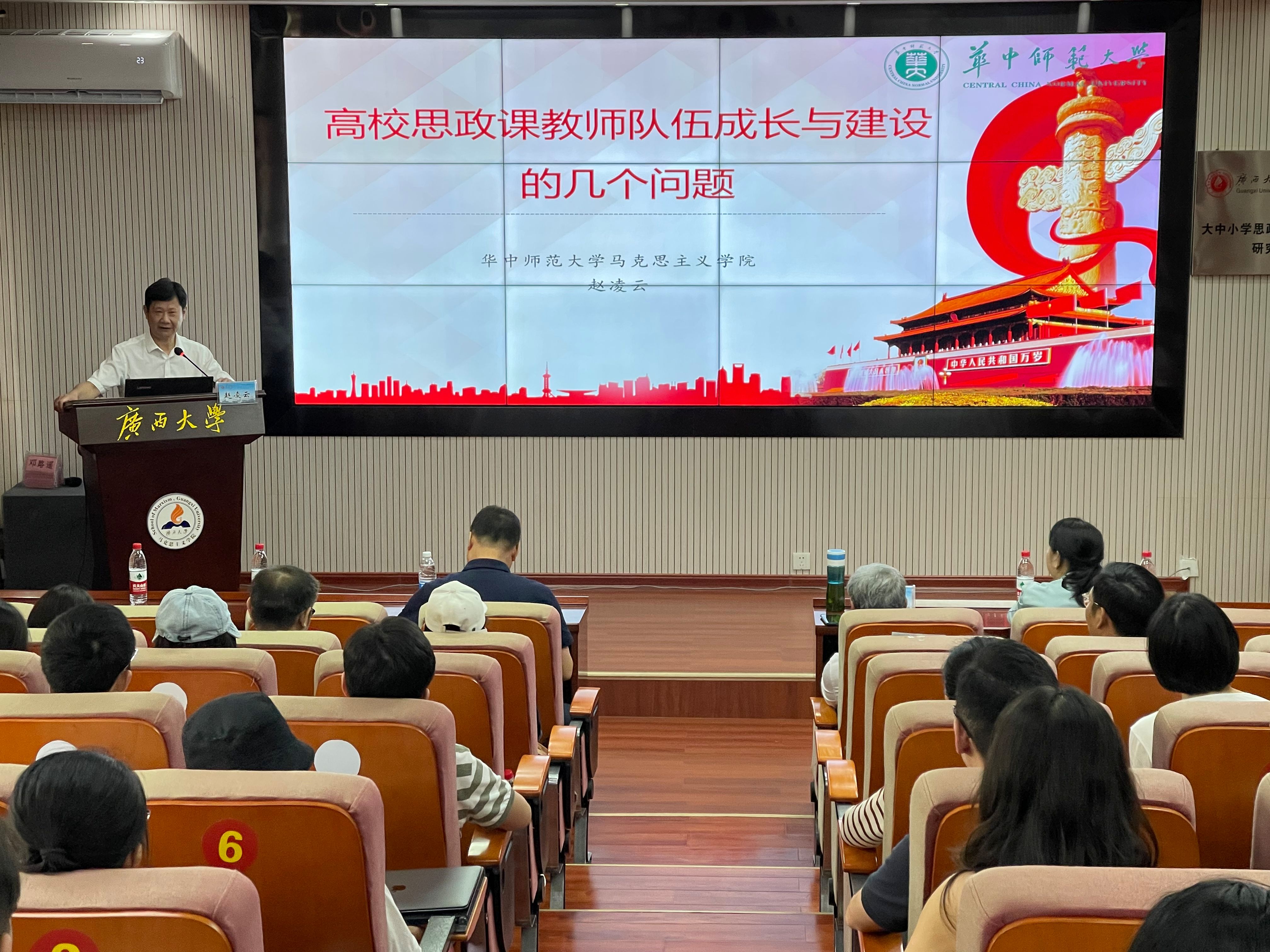 10月22日,华中师范大学原党委书记,二级教授,国务院政府特殊津贴专家、湖北省百名跨世纪人才赵凌云教授受邀来今年会官网作题为《高校思政课教师队伍成长与建设的几个问题》的专题讲座,今年会官网院长徐秦法教授主持本次学术报告会,学院师生代表近百人参加了此次讲座。