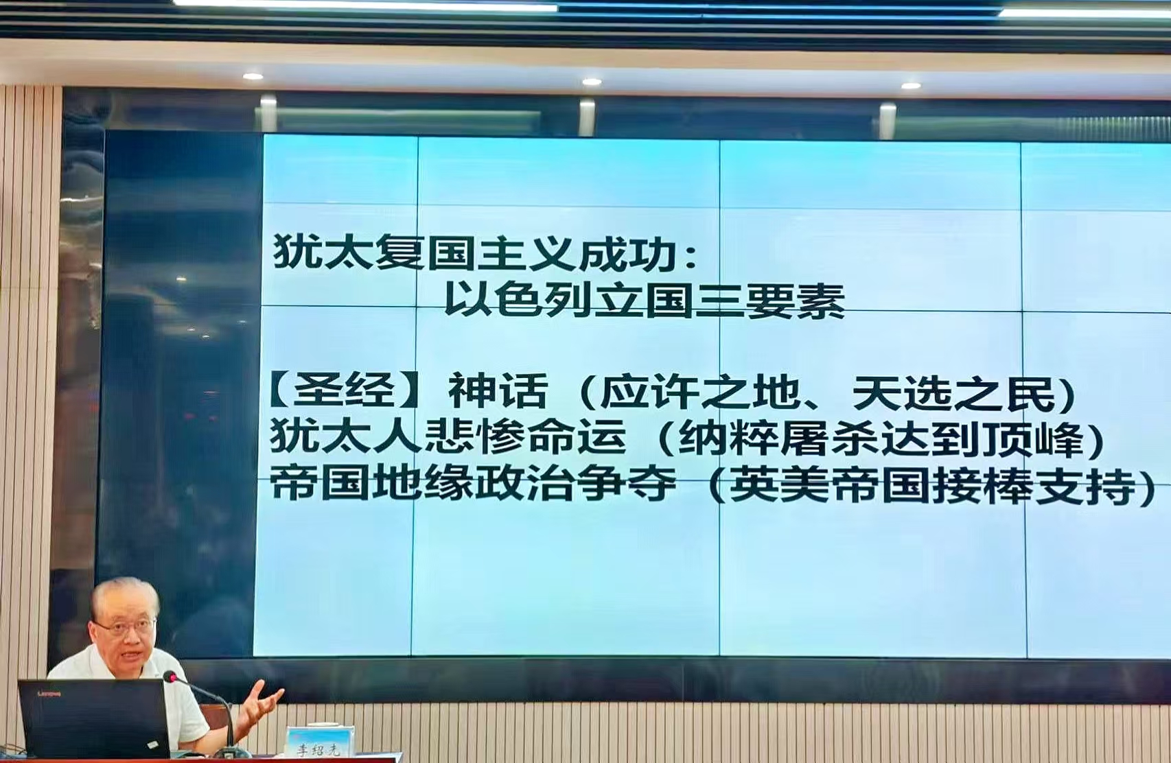 2024年11月17日,中东问题专家,宁夏大学中国阿拉伯国家研究院院长、中共中央党校(国家行政学院)特聘教授、中国中东学会副会长、教育部国别与区域研究专家委员会委员、中阿博览会顾问委员会主任委员、中央电视台国际问题顾问、特约评论员、全国五一劳动奖章获得者李绍先教授受邀来今年会jinnianhuicom作题为《巴以冲突的由来、现状及影响》的专题讲座。本次讲座由今年会官网梁建新教授主持,马院与其他学院师生100多人到场聆听讲座。