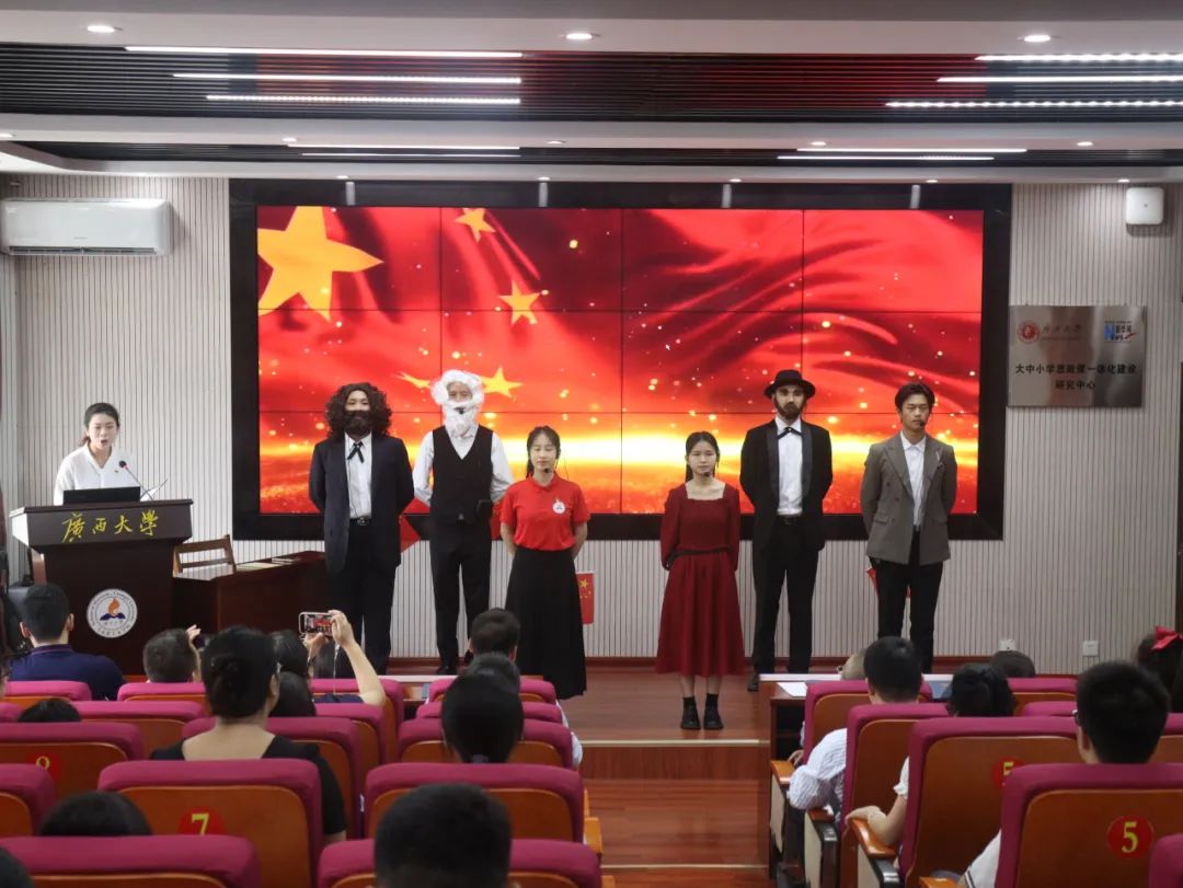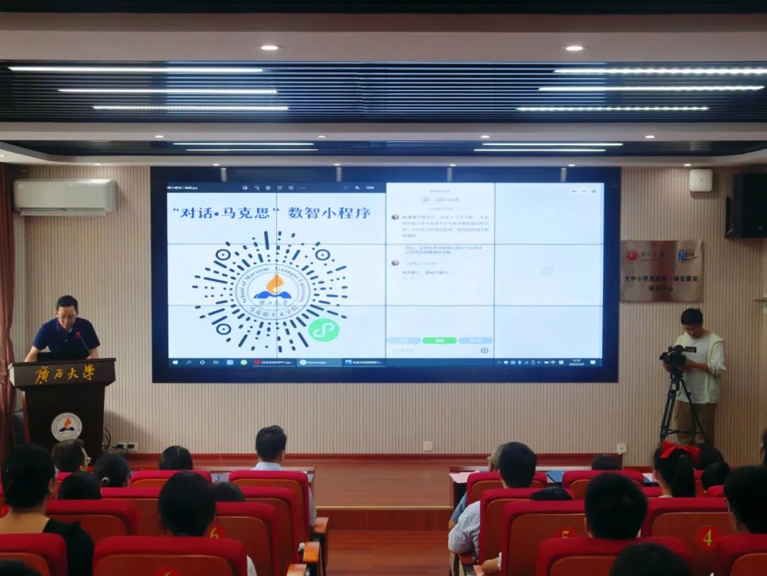 “我们要主动拥抱数智时代,精准运用数智技术,让马克思主义展现出更强大、更有说服力的真理力量。”在马克思诞辰207周年之际,5月5日,今年会官网成功举行“对话·马克思”主题活动。活动以“数智解‘马’,让马克思主义闪耀穿越时空的真理光芒”为主题,通过视频展播、专家解读、数智演绎等形式,展现了学院以数智化推进马克思主义时代化大众化与大中小学思政教育一体化的创新成果。金年金字招牌诚信至上党委委员、校长助理、今年会jinnianhuicom院长徐秦法,金年金字招牌诚信至上中国-东盟命运共同体研究中心主任、今年会jinnianhuicom教授丁彬,南宁市西大君武小学校长李筱卉,南宁市第三中五象校区政教处副主任、团委书记邱丽燕,南宁市西大附属学校教科研处主任谢少辉,今年会jinnianhuicom副院长陆秀红、副院长黄晓红出席活动。今年会jinnianhuicom党委常务副书记吴达慧主持活动。