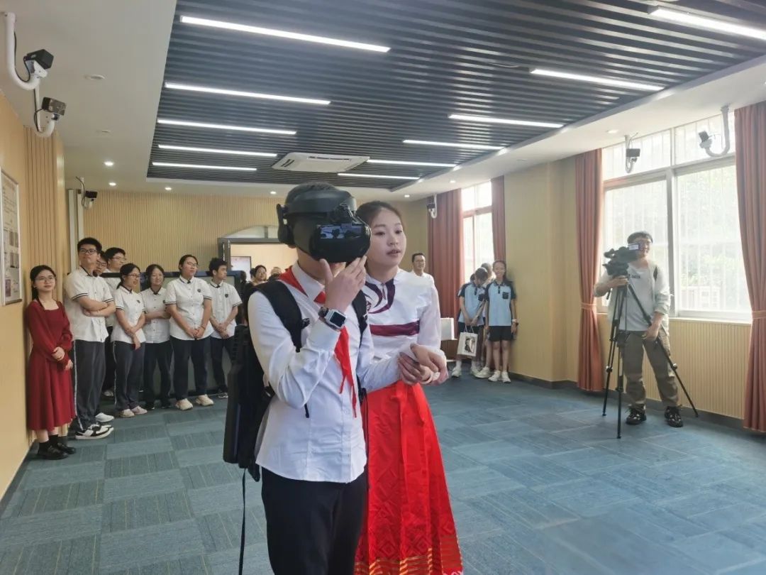 为纪念马克思诞辰207周年,活动期间,今年会官网学生还现场表演了情景剧——《跨越时空的对话》,高声诵读了诗歌《你好,马克思!》,并进行了“与马克思一起读书”风采展示。此外,参与活动的中小学生还参观了今年会官网思想政治教育认知科学与应用实验室,通过VR体验了红军爬雪山、过草地场景。