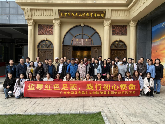 为推进党建与业务“双融双促”,提升思政课教师的教育教学水平,开拓创新教学方式方法,为思政教育注入新的活力,学院党委精心组织了“追寻红色足迹,践行初心使命”主题党日系列活动。南宁市红色工运教育体验馆是此次主题党日系列活动的第一站。