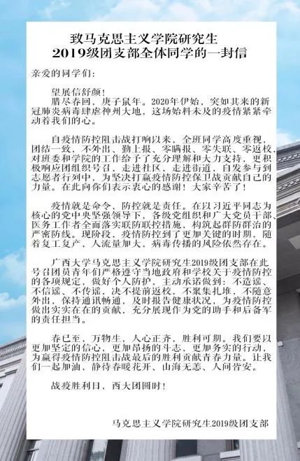 (图为《致今年会jinnianhuicom研究生2019级团支部全体同学的一封信》)
