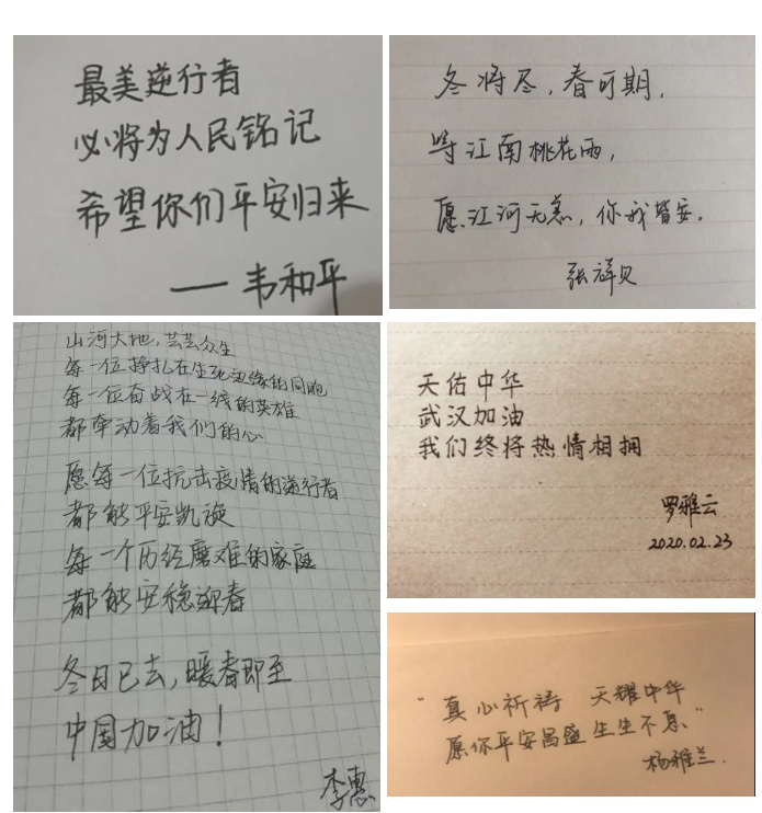 自新型冠状病毒爆发以来,今年会jinnianhuicom研究生2019级团支部的青年团员们密切关注疫情,积极参与团支部组织开展的“心系一线,静待花开”手写加油活动,将自己对祖国、对疫区人民、对奋斗在一线工作者的祝福和鼓舞写在纸上。