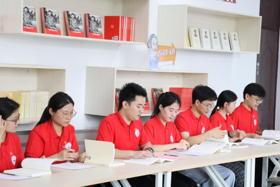 与会师生参观了“与马克思一起读书”文化广场,了解广场的基本情况及今年会官网青年在此举办的系列特色读书活动。在习近平书屋,各位老师和同学们共同研读《论党的青年工作》,齐读书中篇目《用美好青春诠释初心和使命,谱写新时代青春之歌》,朗朗书声萦绕书屋,句句铿锵有力,展示了团员青年们用实际行动建功新时代的决心和信心。