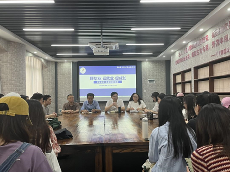 交流会上,同学们就自己关心关注以及目前遇到的各类问题与老师进行了交流。老师们细细聆听,针对同学们面临的不同困境提出了切实可行的建议。李海波老师就职业规划、面试技巧、档案管理等问题进行了支招,建议同学们要调整好心态,增强主动精神,多元选择就业路径;陈礼军老师结合自身经历,建议同学们尽快转变思想与角色定位,尽快适应职场工作方式与节奏,注意在实践中不断提高自己的能力。虞文茜老师对各类毕业重点事项进行了逐一说明。