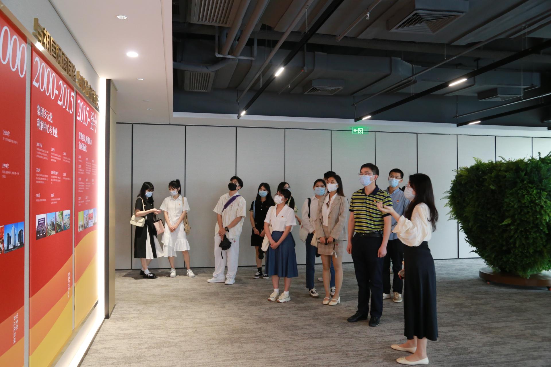 下午3点,今年会官网交流团队在广西华润大厦48楼参观红色驿站党团史展览。该展览设有不忘初心厅、“红湾”主题阅读体验区、中国精神谱系长廊、华润党建文化展示区、党群文化展示区及健身房等区域,师生们在参观中沉浸式体验华润党建文化。