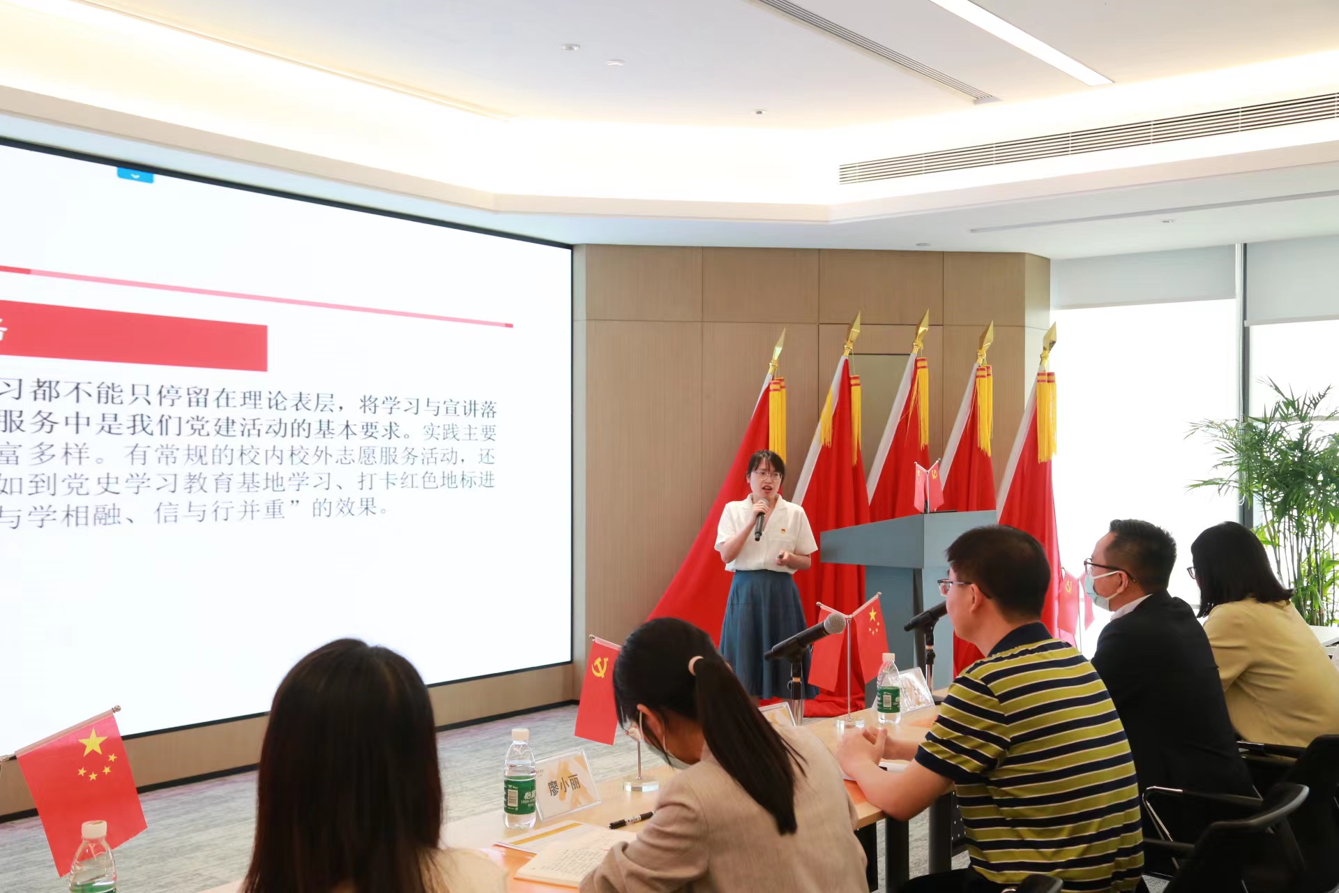 今年会官网唯理社党支部组织委员刘洁、党建会主任李梦也依次分享了今年会官网党建工作的特色、经验和成果,华润置地广西公司团支部书记李敏向与会师生介绍了华润的发展历史、党建文化和业务板块及在建项目。