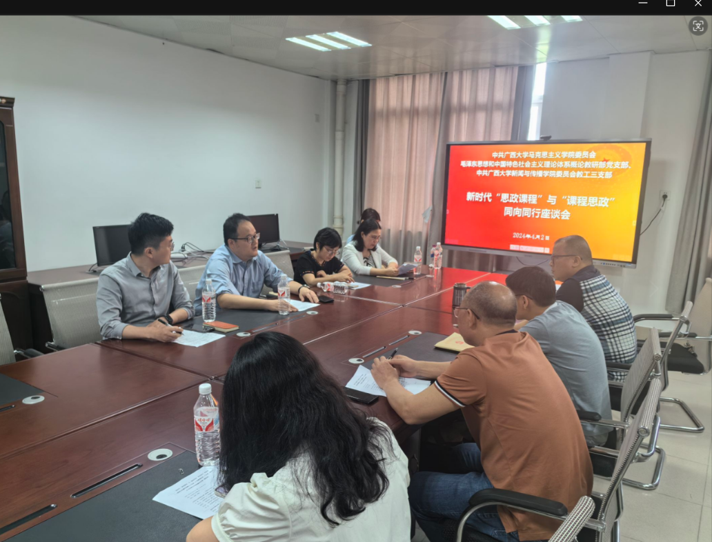 新闻传播学院陈瑞群老师围绕从工具理性到价值理性——广告专业课程思政建设路径;黄海珠围绕课程思政与教学实践的结合;宋存杰老师围绕思政元素在播音主持教学实践中的应用;李凯老师围绕“四个融合”提升新闻传播理论课程思政质量;薛强老师围绕坚持马克思主义新闻观—浅谈新媒体教学中的课程思政等做了交流发言。薛强老师还表示今后要进一步加强交流沟通,特别是在支部建设和教研室建设方面要加强联学共建活动。