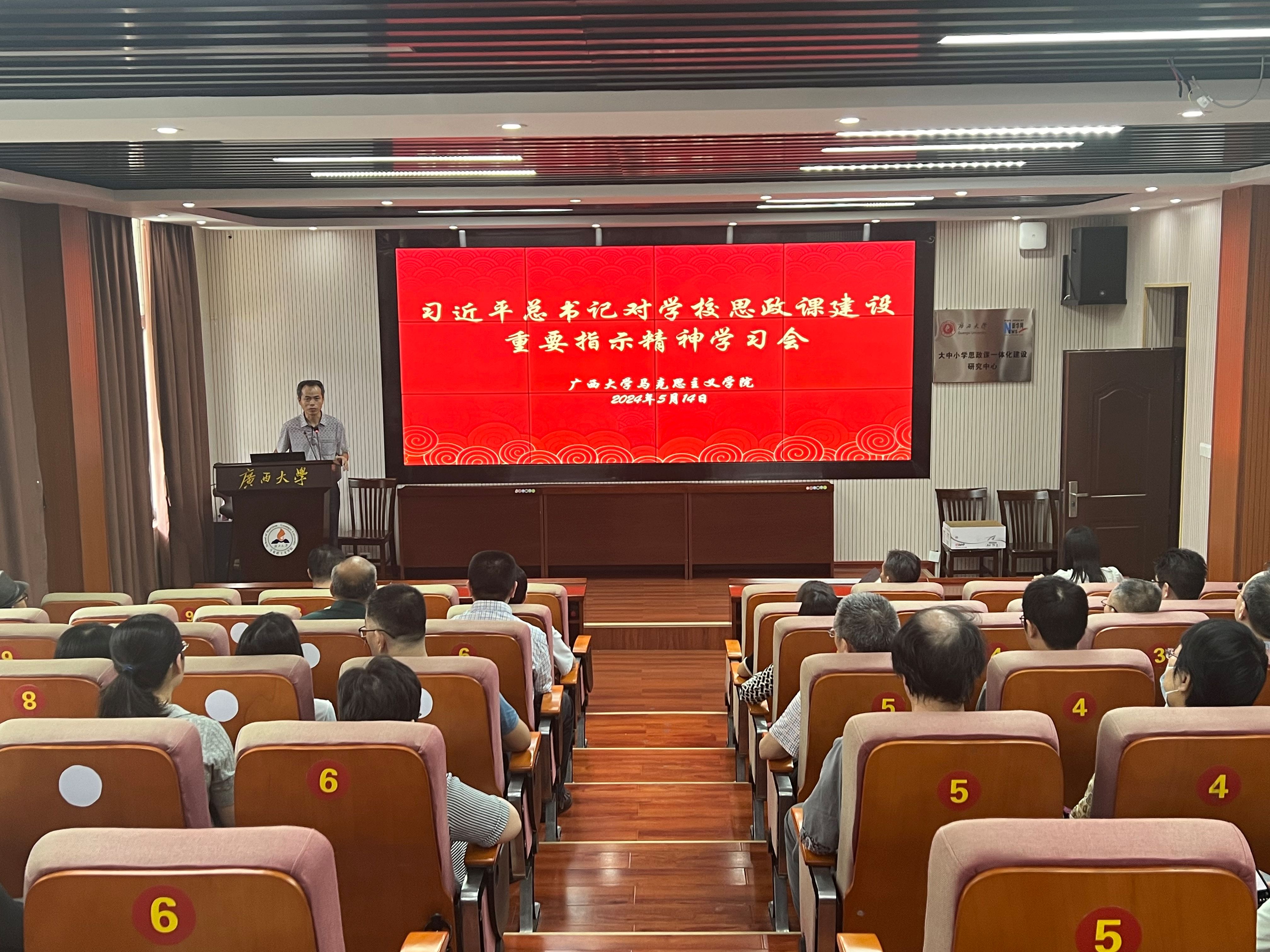 2024年5月14日,今年会官网召开习近平总书记对学校思政课建设重要指示精神学习会。学院全体教职工参加了会议。