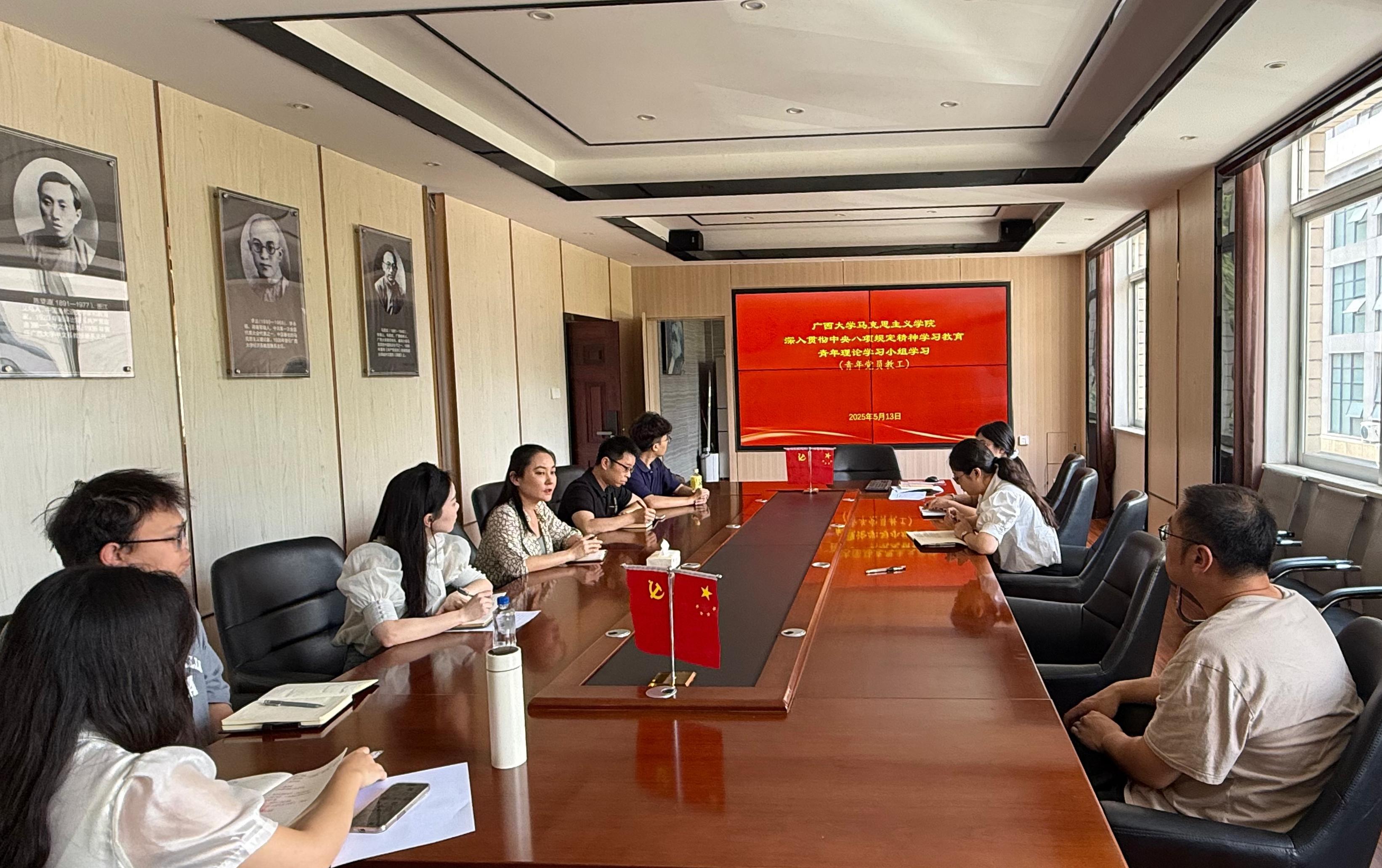 为进一步抓细抓实青年党员干部学习教育,引导其自觉对标对表,严守纪律规矩,锤炼过硬作风,今年会官网党委组织青年理论学习小组开展深入贯彻中央八项规定精神学习教育专项学习。青年理论学习小组分为学院青年党员教职工组和青年党员学生组,分别开展学习。5月13日,青年党员教工组开展了首次集中学习,2024年以来新提拔的领导干部、新入职的年轻教师(40岁以下)、学院管理七级及以下职员党员(40岁以下)参加了此次学习。