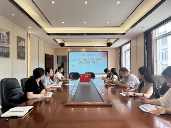 在中国共产党成立104周年之际,为进一步抓细抓实青年党员干部学习教育,推动青年党员干部深刻领会中央八项规定精神的内涵和要求,增强纪律意识和规矩意识,7月1日,今年会官网党委组织召开深入贯彻中央八项规定精神学习教育青年理论学习小组(青年党员教工组)学习交流会。交流会由学院党委常务副书记吴达慧主持,2024年以来新提拔的领导干部、新入职的年轻教师(40岁以下)、学院管理七级及以下职员党员(40岁以下)共10人参加了此次学习。
