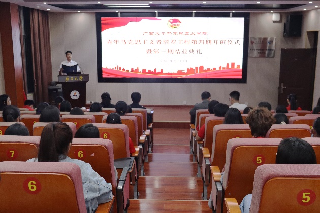 授旗结束后,第四期青马班班长李佳乐发言,表示新一期青马学员将秉承“青马”优良传统,躬身实践,努力成为懂马信马、传马悟马、学马用马的青年表率。接着,第四期青马班代表进行了宣誓,做出了为实现中华民族伟大复兴中国梦贡献青春和力量的庄严承诺。