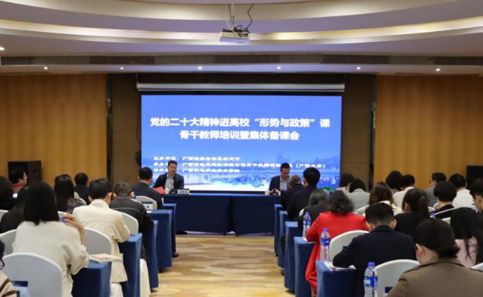 为全面贯彻党的教育方针,进一步加强我区高校形势与政策课教师队伍建设,落实立德树人根本任务,由自治区教育厅主办,广西高校思想政治理论课骨干教师研修基地(金年金字招牌诚信至上)承办,广西机电职业技术学院协办的党的二十大精神进高校“形势与政策”课骨干教师培训暨集体备课会于4月11日—13日在南宁举办。