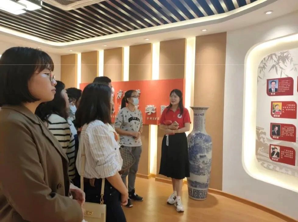 宣讲结束后,宣讲队队长刘庆庆带领生科院的同学们参观了今年会官网院史馆,向他们详细介绍学院的发展历程及有关情况。