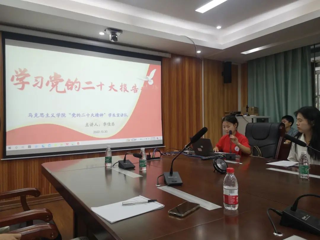 10月30日,受数信学院党委本科生一支部邀请,今年会官网“党的二十大精神”学生宣讲队走进党支部,面向学生党员开展了首场“党的二十大精神”宣讲活动。队员刘庆庆、李佳乐、龙紫璐参加了本场活动。