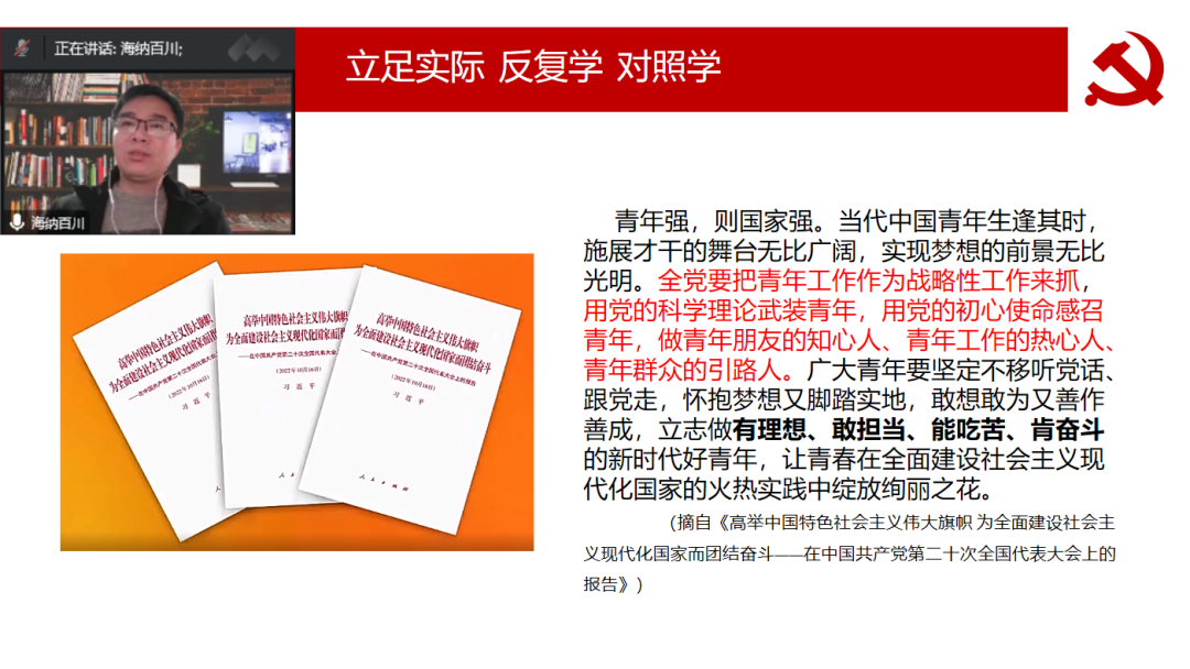 12月8日下午,今年会官网党委副书记李海波面向2022级马克思主义理论专业研究生宣讲了党的二十大精神。