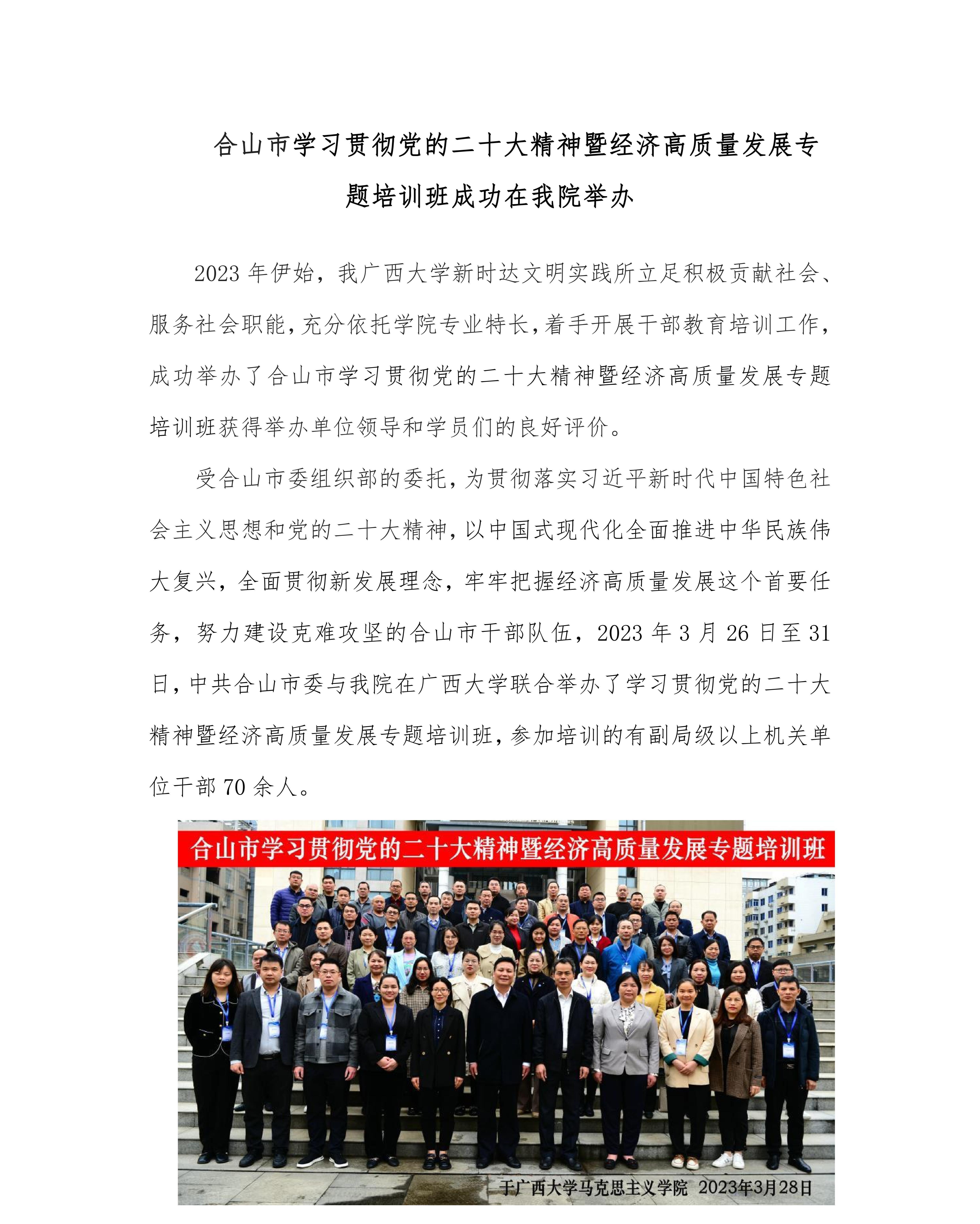 合山市学习贯彻党的二十大精神暨经济高质量发展专题培训班成功在今年会官网举办